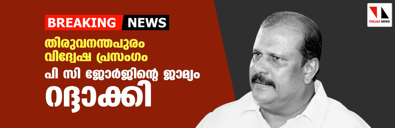 തിരുവനന്തപുരം വിദ്വേഷ പ്രസംഗം;പി സി ജോര്ജിന്റെ ജാമ്യം റദ്ദാക്കി