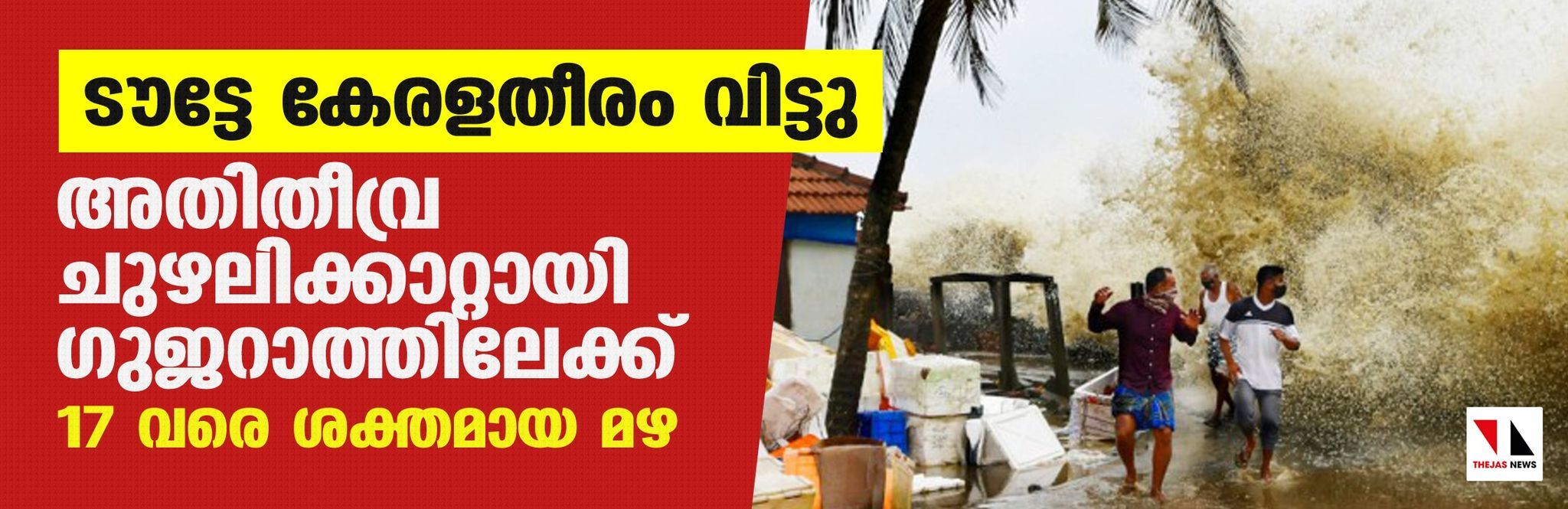 ടൗട്ടേ കേരളതീരം വിട്ടു, അതിതീവ്ര ചുഴലിക്കാറ്റായി ഗുജറാത്തിലേക്ക്; 17 വരെ ശക്തമായ മഴ
