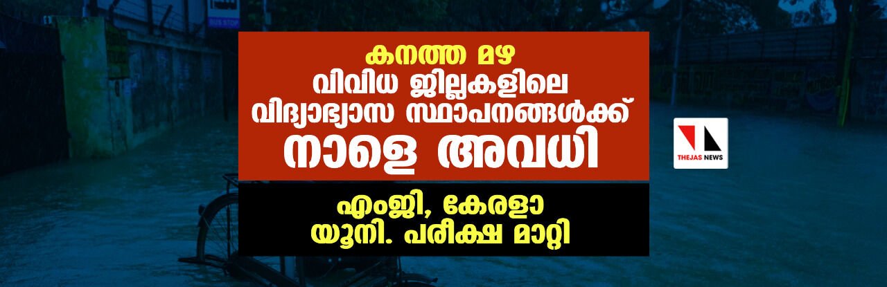 കനത്ത മഴ: വിവിധ ജില്ലകളിലെ വിദ്യാഭ്യാസ സ്ഥാപനങ്ങള്ക്ക് നാളെ അവധി; എംജി, കേരളാ യൂനി. പരീക്ഷ മാറ്റി