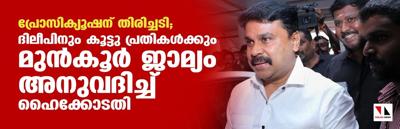 പ്രോസിക്യൂഷന് തിരിച്ചടി; ദിലീപിനും കൂട്ടു പ്രതികള്ക്കും മുന്കൂര് ജാമ്യം അനുവദിച്ച് ഹൈക്കോടതി