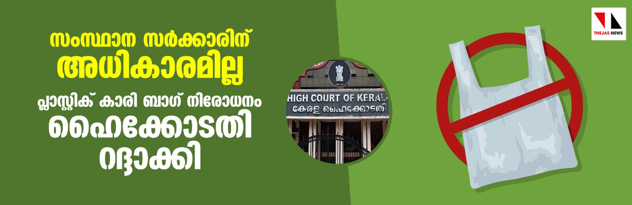 സംസ്ഥാന സര്ക്കാരിന് അധികാരമില്ല; പ്ലാസ്റ്റിക് കാരി ബാഗ് നിരോധനം ഹൈക്കോടതി റദ്ദാക്കി