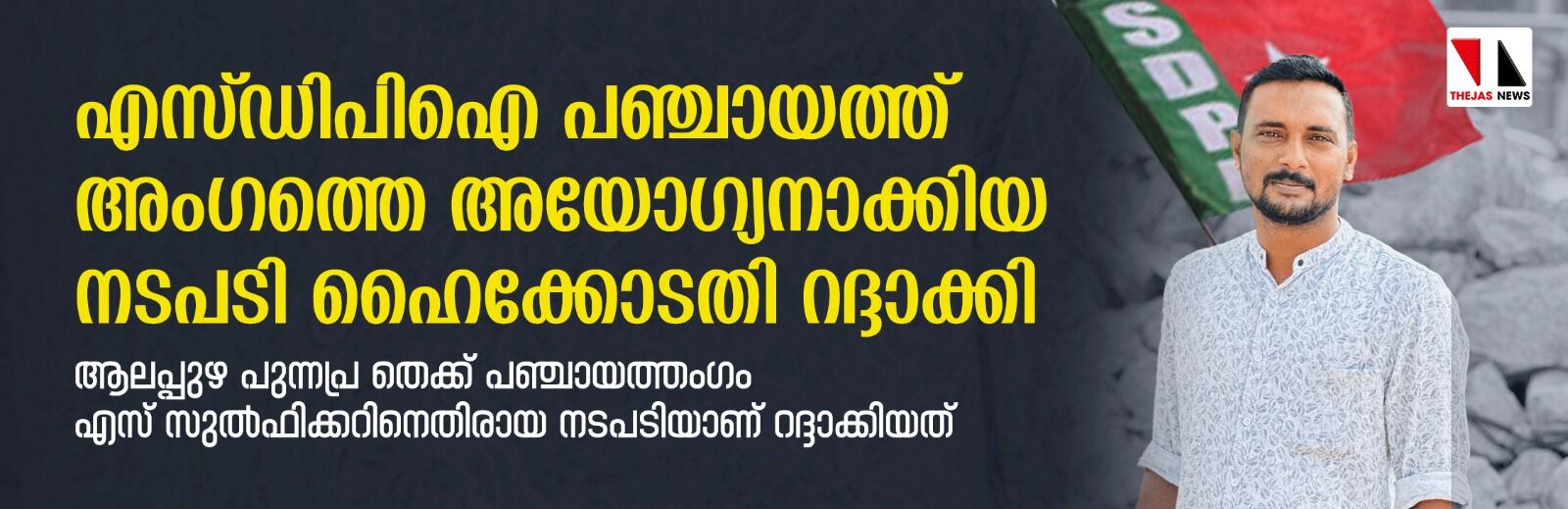 എസ് ഡിപിഐ പഞ്ചായത്ത് അംഗത്തെ അയോഗ്യനാക്കിയ നടപടി ഹൈക്കോടതി റദ്ദാക്കി