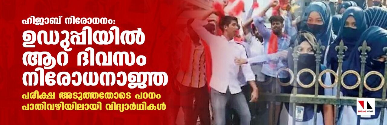 ഹിജാബ് നിരോധനം: ഉഡുപ്പിയില് ആറ് ദിവസം നിരോധനാജ്ഞ; പരീക്ഷ അടുത്തതോടെ പഠനം പാതിവഴിയിലായി വിദ്യാര്ഥികള്