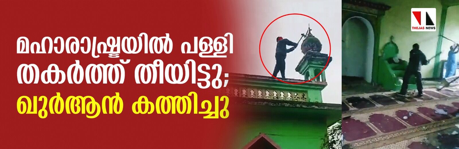 മഹാരാഷ്ട്രയില് പള്ളി തകര്ത്ത് തീയിട്ടു; ഖുര്ആന് കത്തിച്ചു