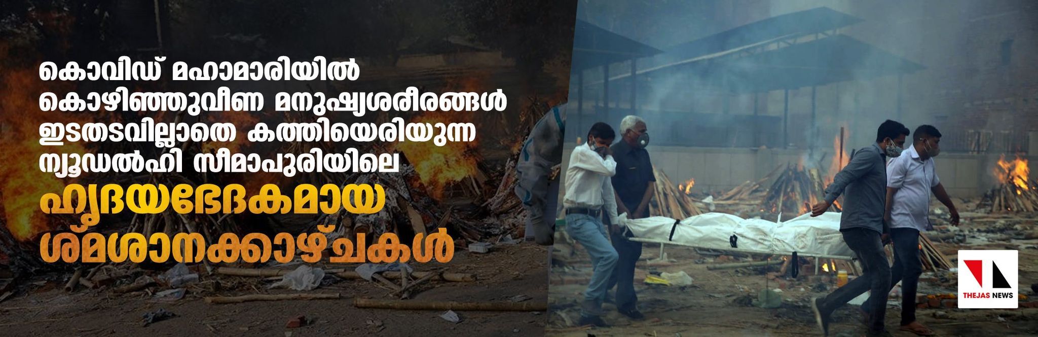 കൊവിഡ് മഹാമാരിയില് കൊഴിഞ്ഞുവീണ മനുഷ്യശരീരങ്ങള് ഇടതടവില്ലാതെ കത്തിയെരിയുന്ന ന്യൂഡല്ഹി സീമാപുരിയിലെ ഹൃദയഭേദകമായ ശ്മശാനക്കാഴ്ചകള്