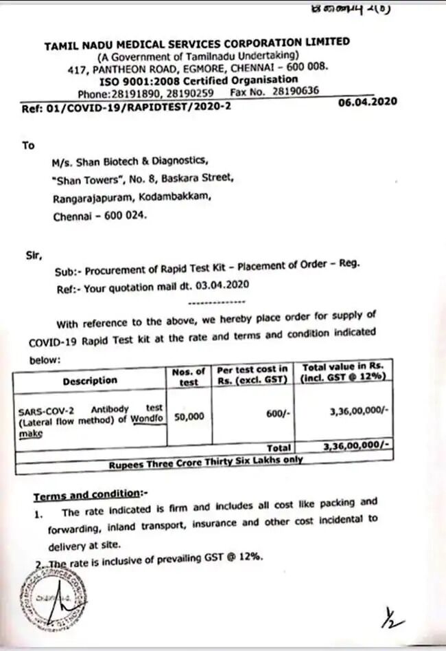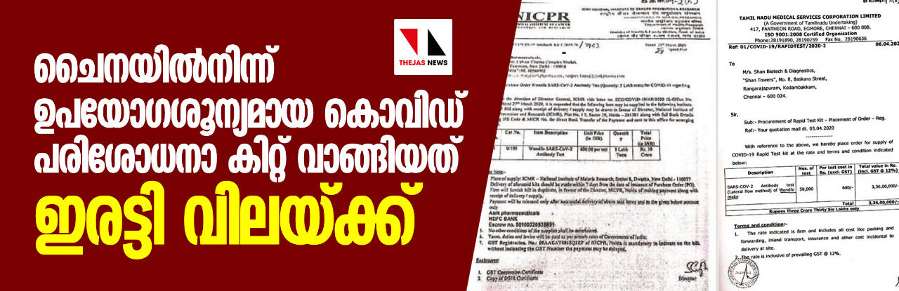 ചൈനയില് നിന്ന് ഉപയോഗശൂന്യമായ കൊവിഡ് പരിശോധനാ കിറ്റ് വാങ്ങിയത് ഇരട്ടി വിലയ്ക്ക്