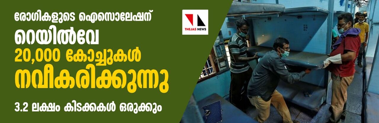 രോഗികളുടെ ഐസൊലേഷനു റെയില്വേ 20,000 കോച്ചുകള് നവീകരിക്കുന്നു; 3.2 ലക്ഷം കിടക്കകള് ഒരുക്കും
