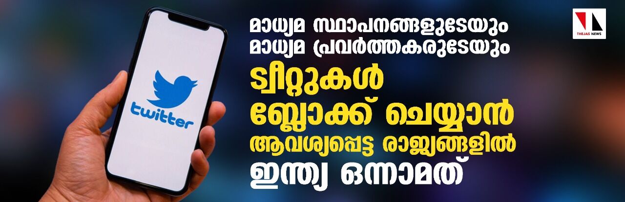 മാധ്യമ സ്ഥാപനങ്ങളുടേയും മാധ്യമ പ്രവർത്തകരുടേയും ട്വീറ്റുകൾ ബ്ലോക്ക് ചെയ്യാന് ആവശ്യപ്പെട്ട രാജ്യങ്ങളില് ഇന്ത്യ ഒന്നാമത്