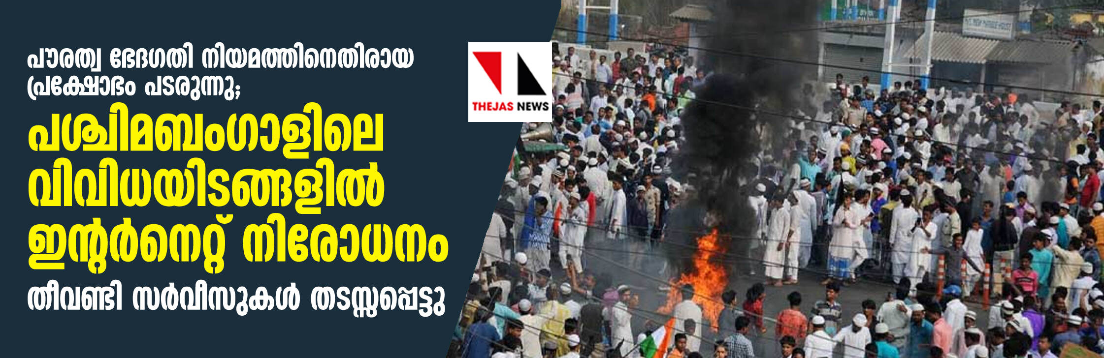 പൗരത്വ ഭേദഗതി നിയമത്തിനെതിരായ പ്രക്ഷോഭം പടരുന്നു; പശ്ചിമബംഗാളിലെ വിവിധയിടങ്ങളില് ഇന്റര്നെറ്റ് നിരോധനം, തീവണ്ടി സര്വീസുകള് തടസ്സപ്പെട്ടു