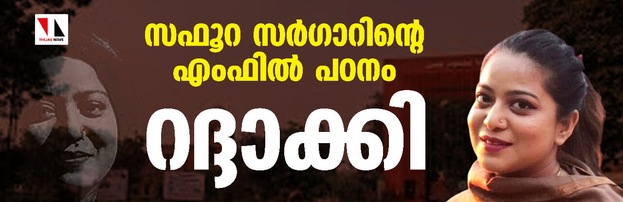 സഫൂറ സര്ഗാറിന്റെ എംഫില് പഠനം റദ്ദാക്കി