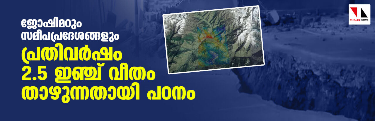 ജോഷിമഠും സമീപപ്രദേശങ്ങളും പ്രതിവര്ഷം 2.5 ഇഞ്ച് വീതം താഴുന്നതായി പഠനം