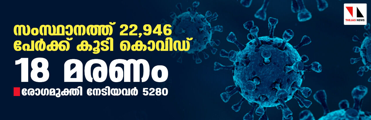 സംസ്ഥാനത്ത് കൊവിഡ് കുതിക്കുന്നു; ഇന്ന് രോഗം സ്ഥിരീകരിച്ചത് 22,946 പേര്ക്ക്; ആകെ മരണം 50,904