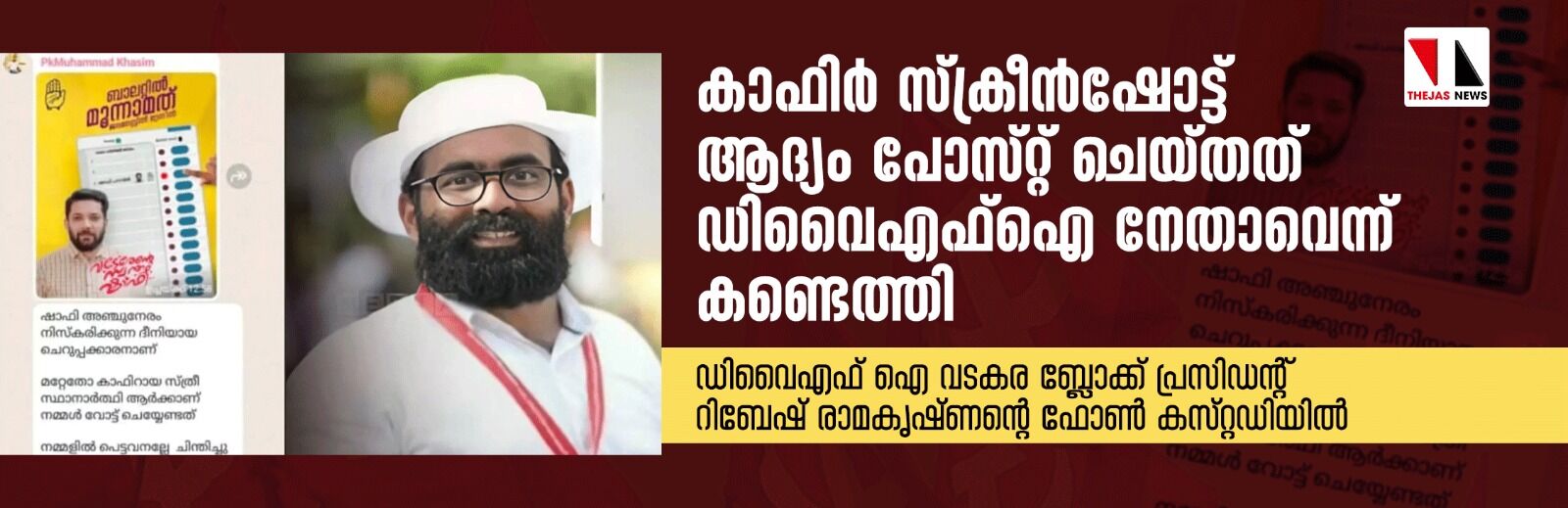 കാഫിര് സ്ക്രീന്ഷോട്ട് ആദ്യം പോസ്റ്റ് ചെയ്തത് ഡിവൈഎഫ്ഐ നേതാവെന്ന് കണ്ടെത്തി