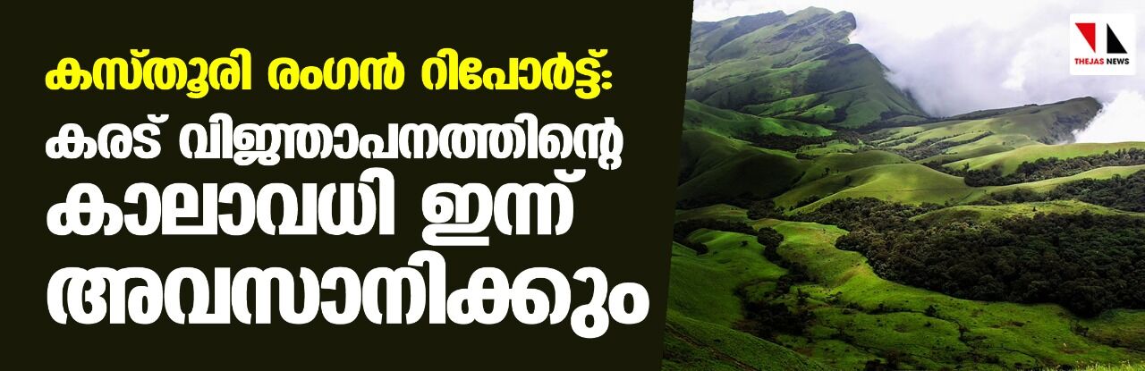 കസ്തൂരി രംഗന് റിപോര്ട്ട്: കരട് വിജ്ഞാപനത്തിന്റെ കാലാവധി ഇന്ന് അവസാനിക്കും