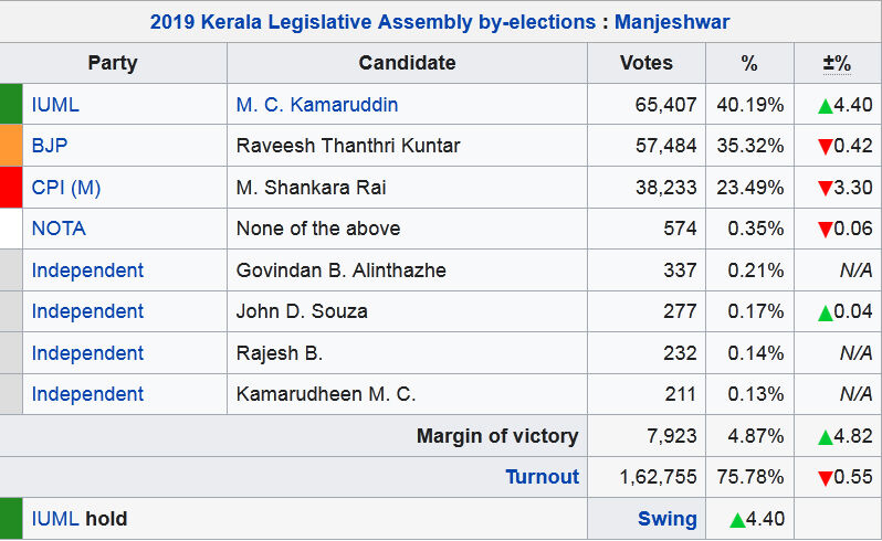 മഞ്ചേശ്വരം, വോര്ക്കാടി, മീഞ്ച, പൈവളികെ, മംഗല്പാടി, കുമ്പള, പുത്തിഗെ, എന്മകജെ എന്നീ പഞ്ചായത്തുകള് ഉള്പ്പെട്ടതാണ് മഞ്ചേശ്വരം നിയമസഭാമണ്ഡലം. 2011 മുതല് 2018 വരെ ഇന്ത്യന് യൂനിയന് മുസ്ലിം ലീഗിലെ പി ബി അബ്ദുര് റസാഖാണ് മണ്ഡലത്തെ പ്രതിനിധീകരിച്ച് നിയമസഭയിലെത്തിയത്. വിരലിലെണ്ണാവുന്ന വോട്ടുകള്ക്കായിരുന്നു വിജയം. പി ബി അബ്ദുര് റസാഖിന്റെ വിയോഗത്തെ തുടര്ന്ന് 2019 ഒക്ടോബറില് നടന്ന ഉപതിരഞ്ഞെടുപ്പില് പക്ഷേ, കാവിക്കോട്ടകളുടെ മനപ്പായസം ബഹുദൂരം പിന്നിലായി. മുസ് ലിം ലീഗിന്റെ എം സി ഖമറുദീന് 7923 വോട്ടിനാണ് ജയിച്ചുകയറിയത്. പക്ഷേ, ഇക്കുറി ലീഗുകാര് കമറൂച്ച എന്നു വിളിക്കുന്ന എം സി ഖമറുദ്ദീനു സീറ്റുണ്ടാവില്ലെന്ന് ഉറപ്പാണ്. കാരണം, ജ്വല്ലറി നിക്ഷേപത്തട്ടിപ്പ് കേസില് സ്വന്തം രാഷ്ട്രീയപ്പാര്ട്ടിയില് പെട്ടവരെ തന്നെ വഞ്ചിച്ചതിനു കണ്ണൂര് സെന്ട്രല് ജയിലില് നിന്ന് ഖമറുദ്ദീന് ഇറങ്ങിയിട്ട് ദിവസങ്ങളേ ആയിട്ടുള്ളൂ. അതിനാല് തന്നെ ശക്തമായ സ്ഥാനാര്ഥിയെ കണ്ടെത്തുകയെന്നത് ലീഗിനു വെല്ലുവിളി തന്നെയാണ്. ഇവിടെ ഇടതുപക്ഷം മൂന്നാം സ്ഥാനത്താണ്.