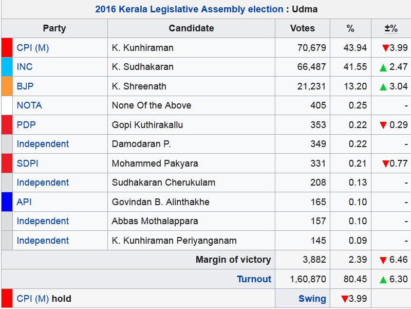 ജില്ലയിലെ തന്നെ ചുവന്ന മണ്ണ് എന്നു വിശേഷിപ്പിക്കാവുന്ന മണ്ഡലമാണ് ഉദുമ. അരിവാള് ചുറ്റിക നക്ഷത്രത്തെ ഒരേയൊരു തവണ മാത്രമാണ് ഉദുമക്കാര് കൈവിട്ടത്. പിന്നീട് കൂടുതല് ചുവപ്പിക്കുകയായിരുന്നു. കഴിഞ്ഞ തവണ കണ്ണൂരില് നിന്നുള്ള കോണ്ഗ്രസിന്റെ അതികായന് കെ സുധാകരന് നേരിട്ടെത്തി ഉദുമ പിടിക്കാന് പണി പതിനെട്ടും നോക്കിയെങ്കിലും മണ്ഡലം ചുവന്നുതന്നെയിരുന്നു. അതിനു മുമ്പ് രണ്ടുതവണയും തോറ്റുപിന്മാറിയത് കേരളത്തിലെ തന്നെ പ്രഗല്ഭ ക്രിമിനല് അഭിഭാഷകനായ കോണ്ഗ്രസ് നേതാവ് അഡ്വ. സി കെ ശ്രീധരനാണ്. നാലാമങ്കത്തിലും വെന്നിക്കൊടി പാറിച്ച സിപിഎമ്മിന്റെ കെ കുഞ്ഞിരാമനും ഇക്കുറി സീറ്റുണ്ടാവില്ല. പുതുമുഖങ്ങളെ ഇറക്കി ഉദുമയിലെ ചെഞ്ചായത്തിനു കട്ടി കൂട്ടാമെന്ന് എല്ഡിഎഫിനും ആത്മവിശ്വാസത്തിലാണ്. കാസര്കോഡ് നഗരസഭ, ചെമ്മനാട്, ദേലംപാടി, ബേഡഡുക്ക, മുളിയാര്, കുറ്റിക്കോല്, പള്ളിക്കര, പുല്ലൂര്, പെരിയ, ഉദുമ പഞ്ചായത്തുകള് ഉള്പ്പെട്ടതാണ് ഉദുമ നിയമസഭാമണ്ഡലം.