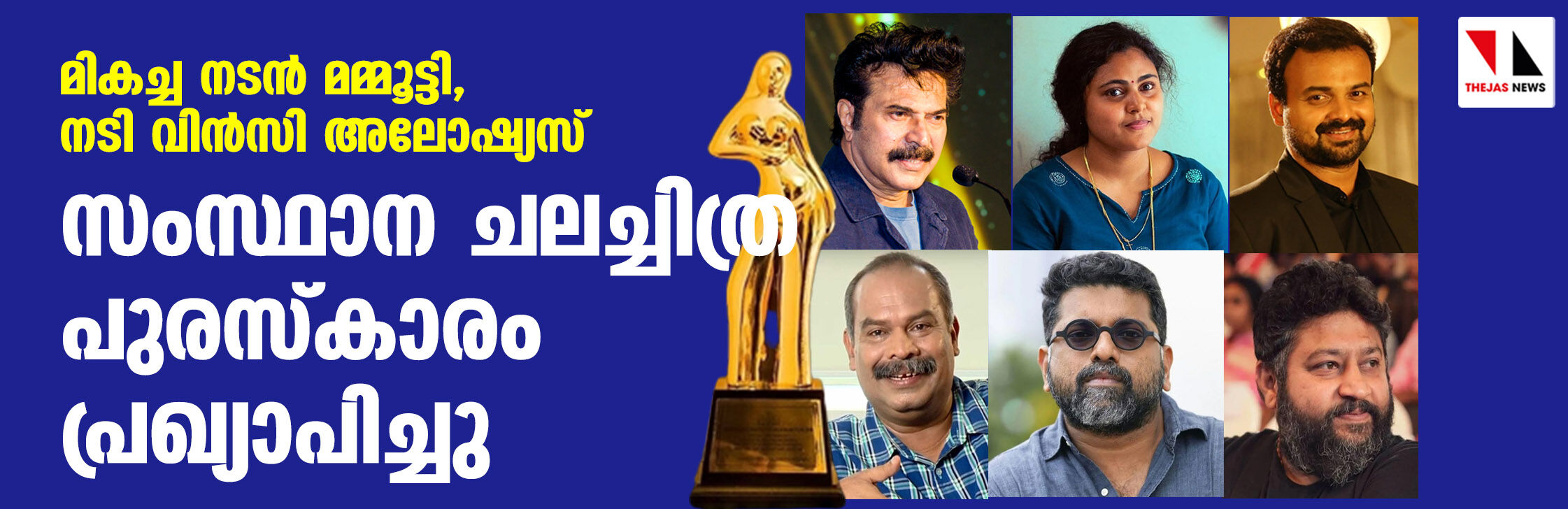 സംസ്ഥാന ചലച്ചിത്ര പുരസ്കാരം പ്രഖ്യാപിച്ചു; മികച്ച നടന് മമ്മൂട്ടി, നടി വിന്സി അലോഷ്യസ്