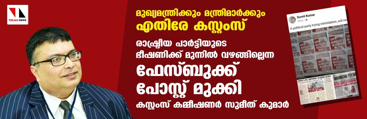 എല്ഡിഎഫ് പ്രതിഷേധം; രാഷ്ട്രീയ പാര്ട്ടിയുടെ ഭീഷണിക്ക് വഴങ്ങില്ലെന്ന ഫേസ് ബുക് പോസ്റ്റ് മുക്കി കസ്റ്റംസ് കമ്മീഷണര് സുമിത് കുമാര്