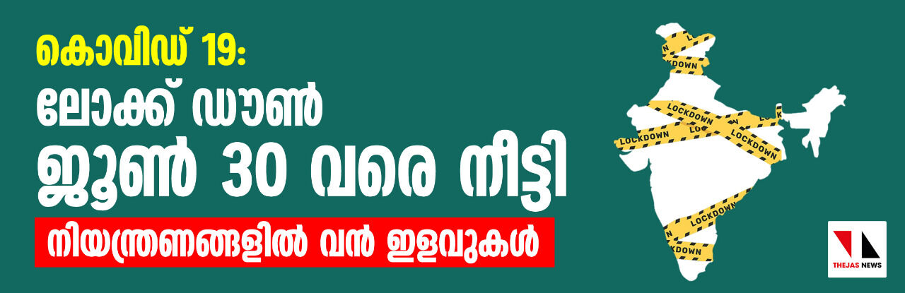 കൊവിഡ് 19: ലോക്ക് ഡൗണ് ജൂണ് 30 വരെ നീട്ടി; നിയന്ത്രണങ്ങളില് വന് ഇളവുകള്