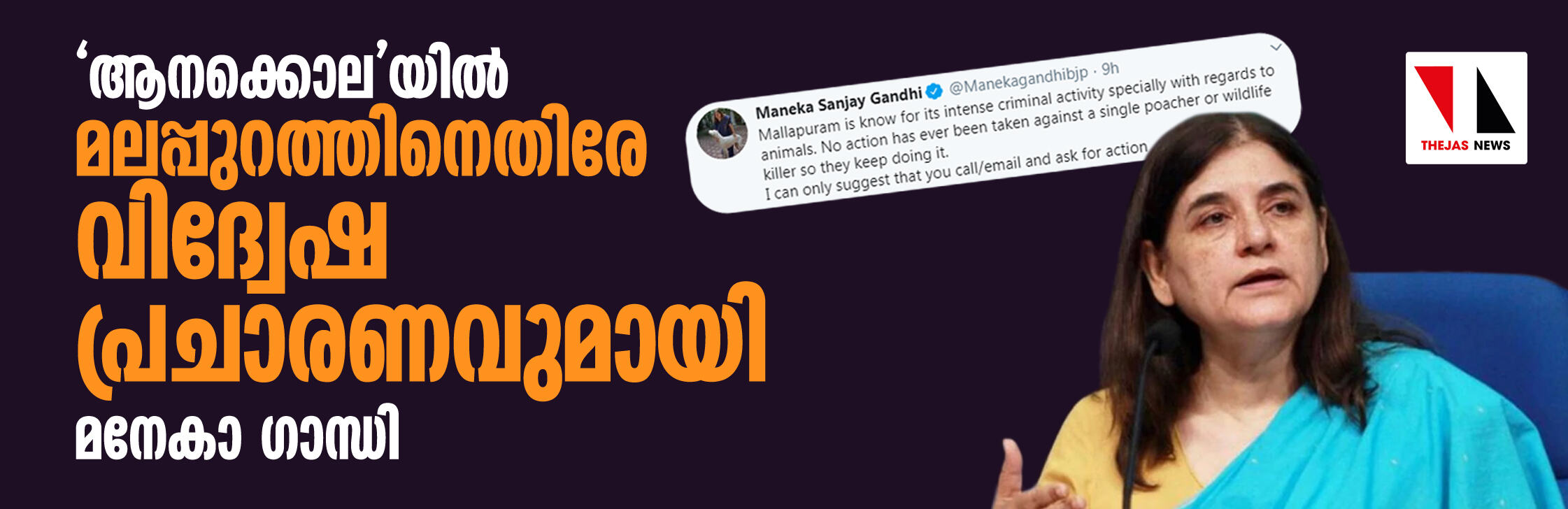 'ആനക്കൊല'യില് മലപ്പുറത്തിനെതിരേ വിദ്വേഷ പ്രചാരണവുമായി മനേകാ ഗാന്ധി