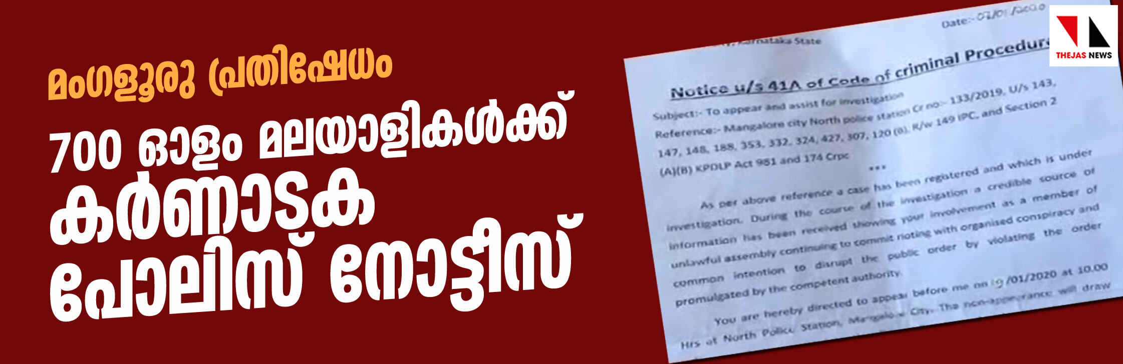മംഗളൂരു പ്രതിഷേധം: 700 ഓളം മലയാളികള്ക്ക് കര്ണാടക പോലിസ് നോട്ടീസ്