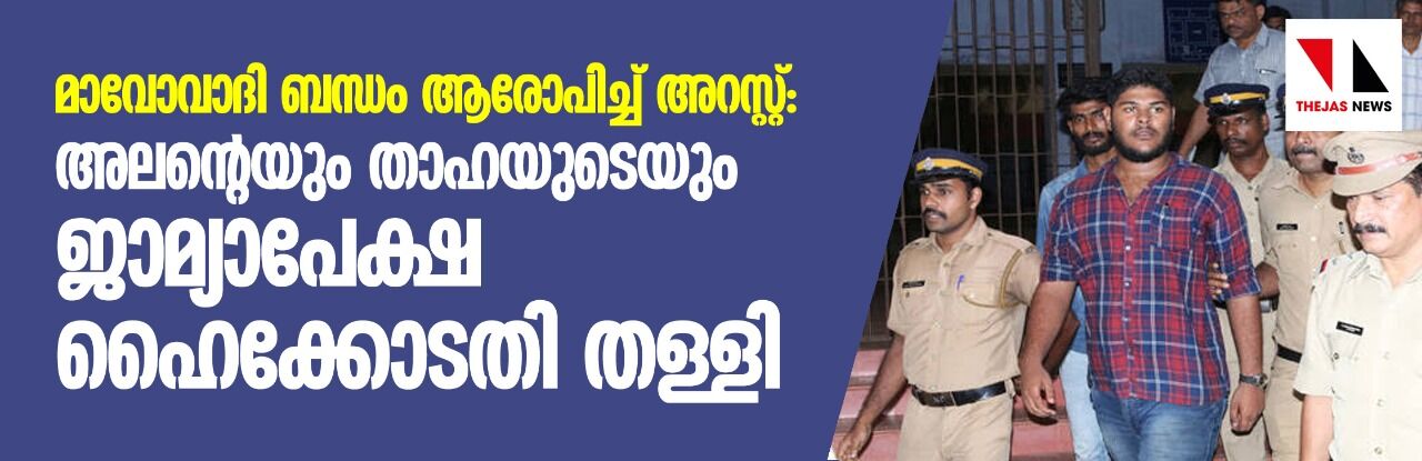 മാവോവാദി ബന്ധം ആരോപിച്ച് അറസ്റ്റ്: അലന്റെയും താഹയുടെയും ജാമ്യാപേക്ഷ ഹൈക്കോടതി തള്ളി