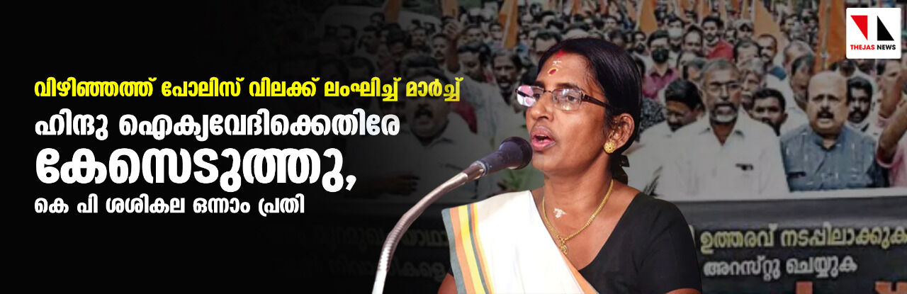 വിഴിഞ്ഞത്ത് പോലിസ് വിലക്ക് ലംഘിച്ച് മാര്ച്ച്; ഹിന്ദു ഐക്യവേദിക്കെതിരേ കേസെടുത്തു, കെ പി ശശികല ഒന്നാം പ്രതി
