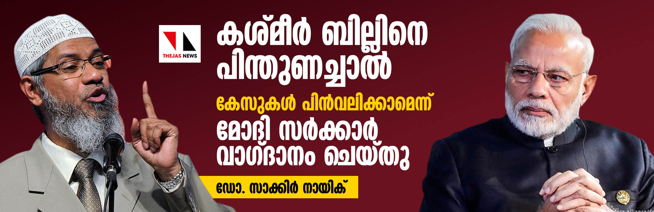 കശ്മീര് ബില്ലിനെ പിന്തുണച്ചാല് കേസുകള് പിന്വലിക്കാമെന്ന് മോദി സര്ക്കാര് വാഗ്ദാനം ചെയ്തു: ഡോ. സാക്കിര് നായിക്