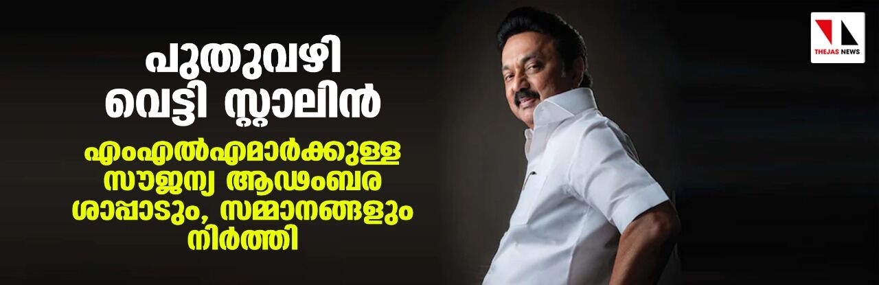 പുതുവഴി വെട്ടി സ്റ്റാലിൻ; എംഎൽഎമാർക്കുള്ള സൗജന്യ ആഢംബര ശാപ്പാടും, സമ്മാനങ്ങളും നിർത്തി