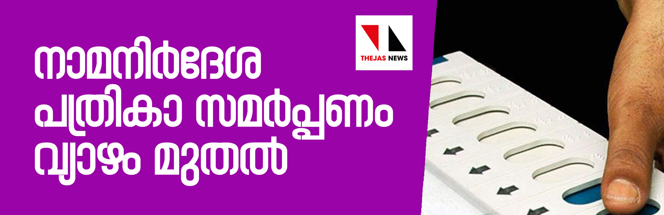 നാമനിര്ദേശ പത്രികാ സമര്പ്പണം വ്യാഴം മുതല്