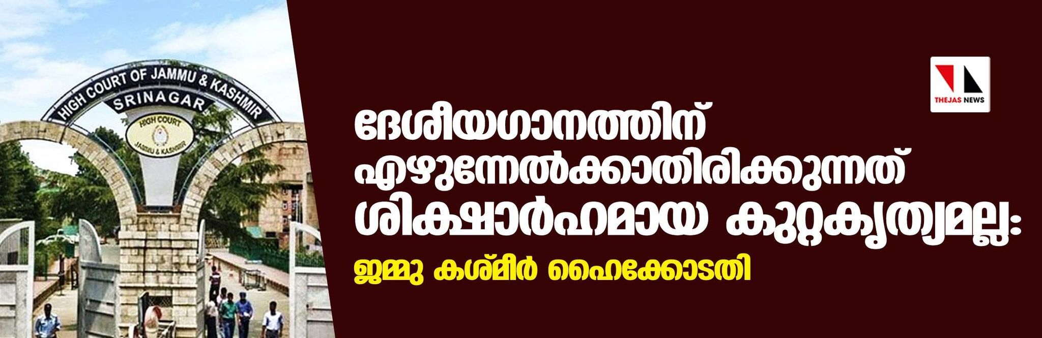 ദേശീയഗാനത്തിന് എഴുന്നേല്ക്കാതിരിക്കുന്നത് ശിക്ഷാര്ഹമായ കുറ്റകൃത്യമല്ല: ജമ്മു കശ്മീര് ഹൈക്കോടതി