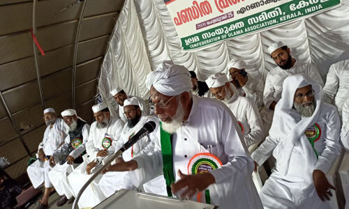 എറണാകുളം രാജേന്ദ്ര മൈതാനിയില് നിന്ന് ആരംഭിച്ച പണ്ഡിത പ്രതിഷേധ റാലി ഉലമാ സംയുക്ത സമിതി സംസ്ഥാന ചെയര്മാന് എസ് അര്ഷദ് ഖാസിമി ജാഥ ക്യാപ്ടന് പി കെ സുലൈമാന് മൗലവിക്ക് പതാക കൈമാറി ഉദ്ഘാടനം ചെയ്തു.