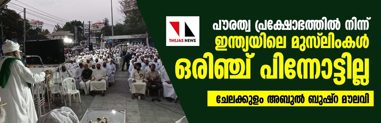 പൗരത്വ പ്രക്ഷോഭത്തില് നിന്ന് ഇന്ത്യയിലെ മുസ് ലിംകള് ഒരിഞ്ച് പിന്നോട്ടില്ല: ചേലക്കുളം അബുല് ബുഷ്റ മൗലവി