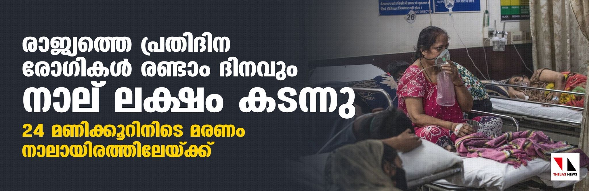 രാജ്യത്തെ പ്രതിദിന രോഗികള് രണ്ടാം ദിനവും നാല് ലക്ഷം കടന്നു; 24 മണിക്കൂറിനിടെ മരണം നാലായിരത്തിലേയ്ക്ക്