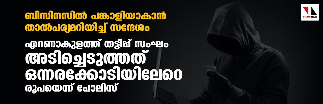 ബിസിനസില് പങ്കാളിയാകാന് താല്പര്യമറിയിച്ച് സന്ദേശം;എറണാകുളത്ത് തട്ടിപ്പ് സംഘം അടിച്ചെടുത്തത് ഒന്നരക്കോടിയിലേറെ രൂപയെന്ന് പോലിസ്