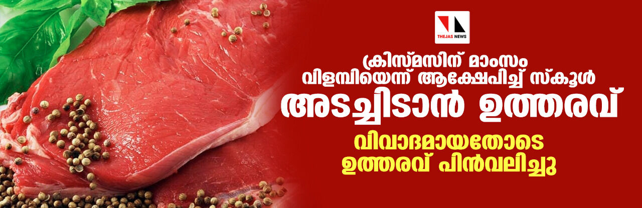 ക്രിസ്മസിന് മാംസം വിളമ്പിയെന്ന് ആക്ഷേപിച്ച് സ്കൂള് അടച്ചിടാന് ഉത്തരവ്; വിവാദമായതോടെ ഉത്തരവ് പിന്വലിച്ചു