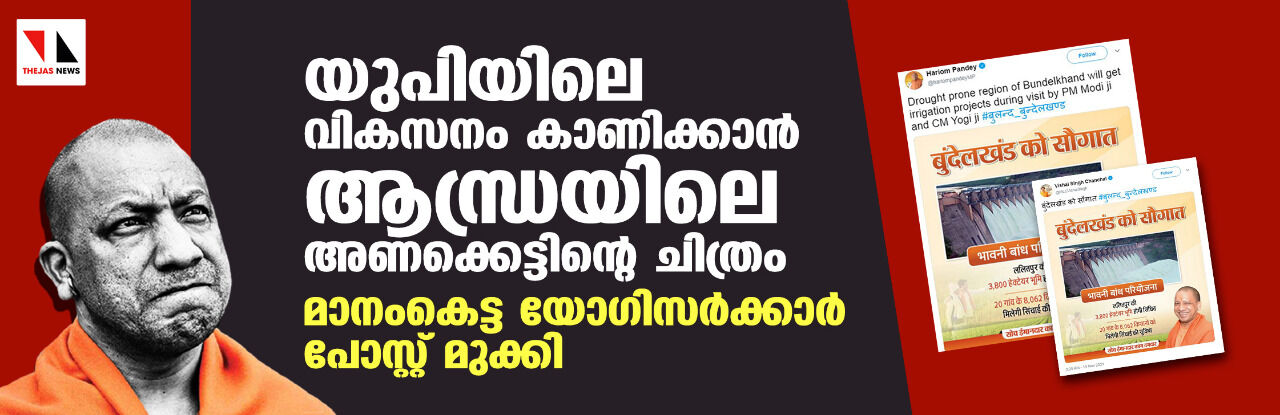 യുപിയിലെ വികസനം കാണിക്കാന് ആന്ധ്രയിലെ അണക്കെട്ടിന്റെ ചിത്രം; മാനംകെട്ട യോഗി സര്ക്കാര് പോസ്റ്റ് മുക്കി