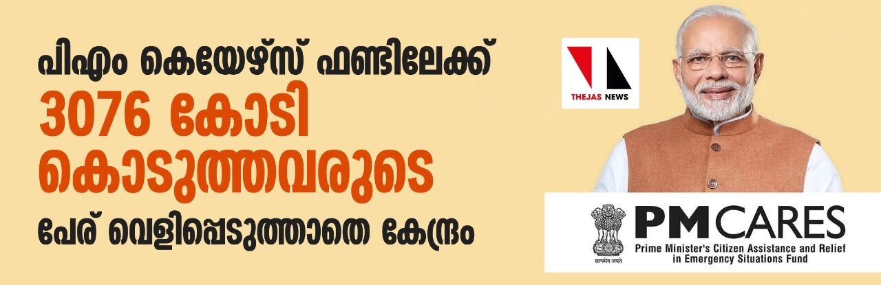 പിഎം കെയേഴ്സ് ഫണ്ടിലേക്ക് 3076 കോടി കൊടുത്തവരുടെ പേര് വെളിപ്പെടുത്താതെ കേന്ദ്രം