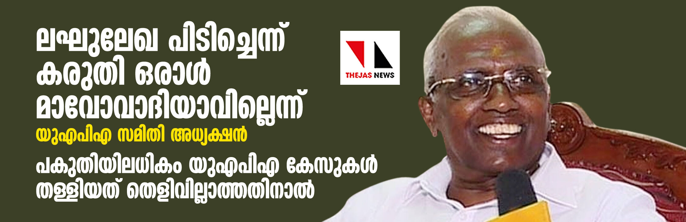 ലഘുലേഖ പിടിച്ചെന്ന് കരുതി ഒരാള് മാവോവാദിയാവില്ലെന്ന് യുഎപിഎ സമിതി അധ്യക്ഷന്