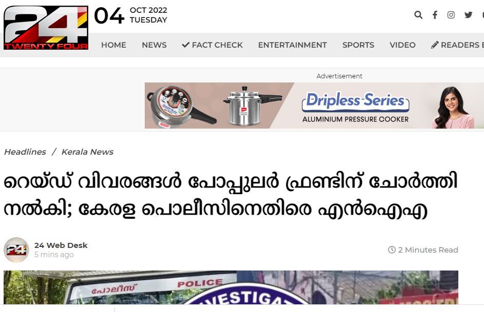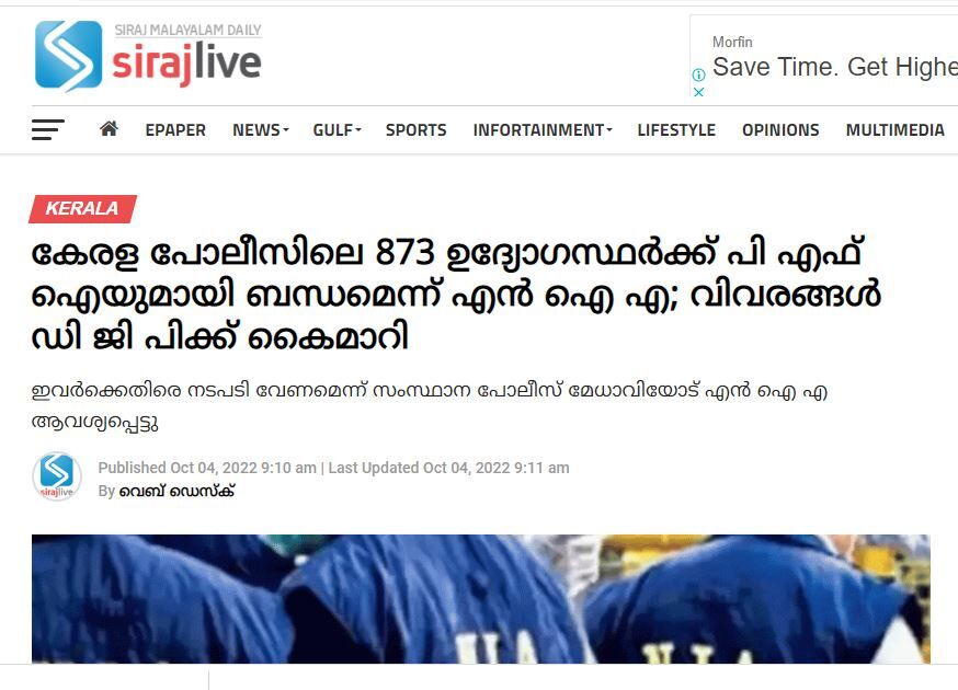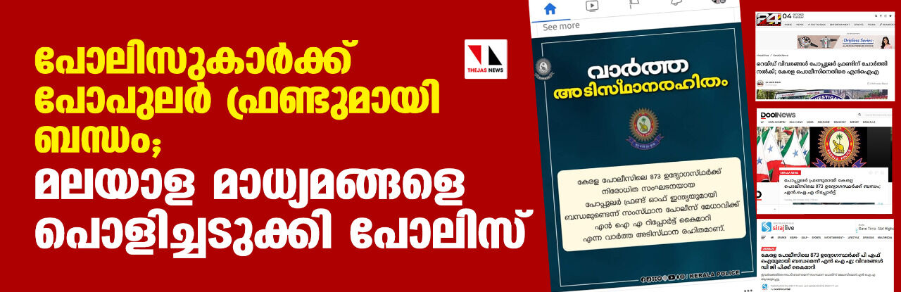പോലിസുകാർക്ക് പോപുലർ ഫ്രണ്ടുമായി ബന്ധം; മലയാള മാധ്യമങ്ങളെ പൊളിച്ചടുക്കി പോലിസ്