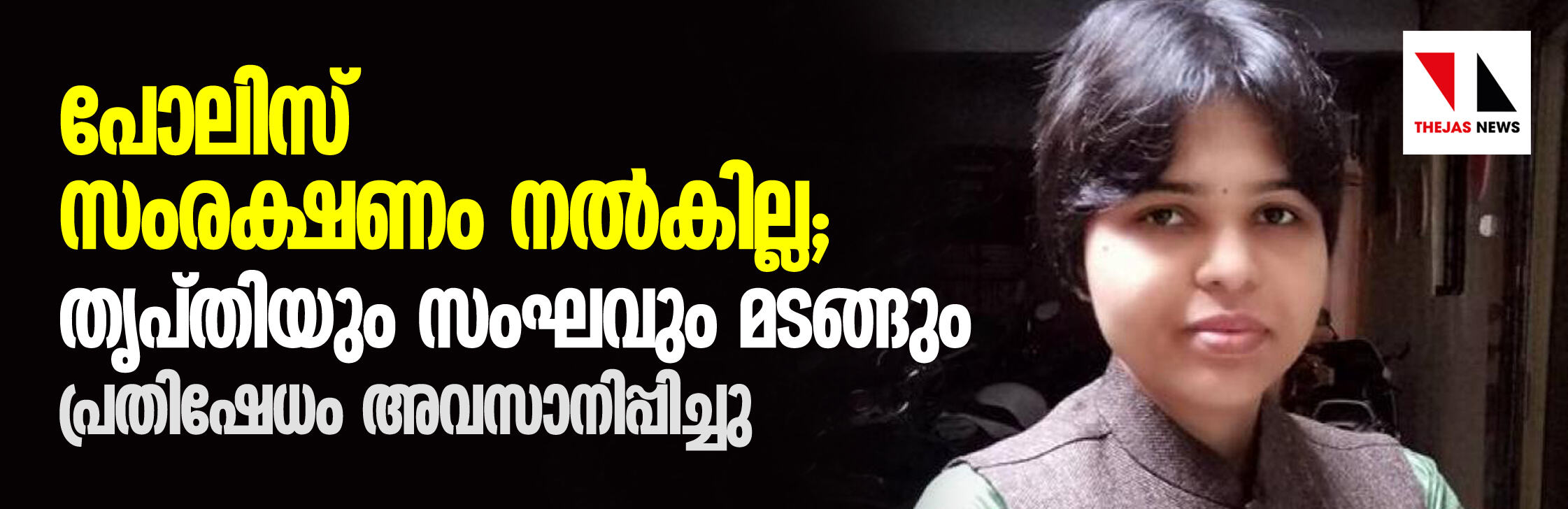പോലിസ് സംരക്ഷണം നല്കില്ല; തൃപ്തിയും സംഘവും മടങ്ങും, കര്മ്മസമിതി പ്രതിഷേധം അവസാനിപ്പിച്ചു