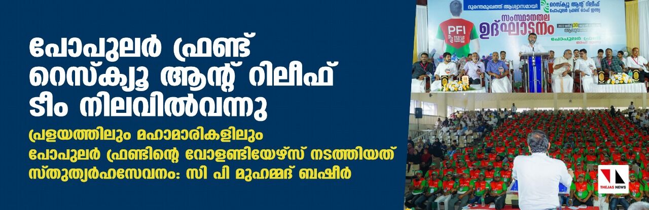 പോപുലര് ഫ്രണ്ട് റെസ്ക്യൂ ആന്റ് റിലീഫ് ടീം നിലവില്വന്നു;പ്രളയത്തിലും കൊവിഡ്, നിപ മഹാമാരികളിലും പോപുലര് ഫ്രണ്ടിന്റെ വോളണ്ടിയേഴ്സ് നടത്തിയത് സ്തുത്യര്ഹസേവനം:സി പി മുഹമ്മദ് ബഷീര്