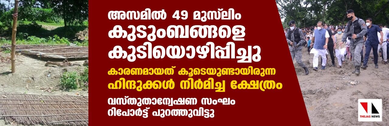 അസമില് 49 മുസ് ലിം കുടുംബങ്ങളെ കുടിയൊഴിപ്പിച്ചു; കാരണമായത് കൂടെയുണ്ടായിരുന്ന ഹിന്ദുക്കള് നിര്മിച്ച ക്ഷേത്രം