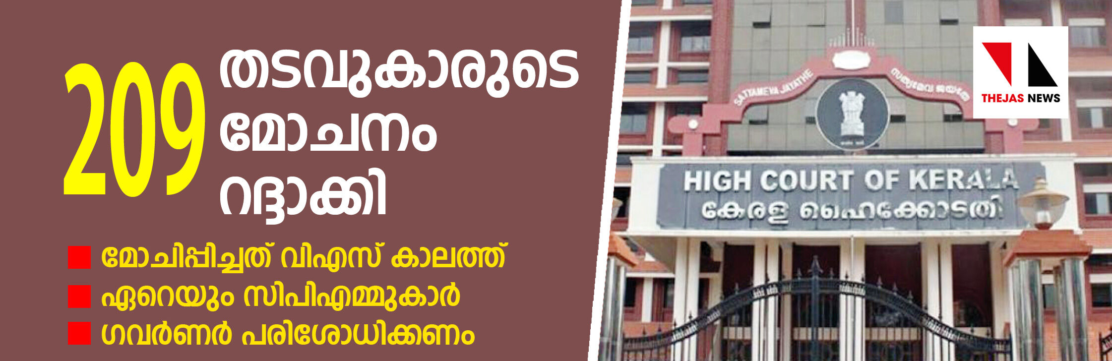വിഎസ് കാലത്തെ 209 തടവുകാരുടെ മോചനം ഹൈക്കോടതി റദ്ദാക്കി