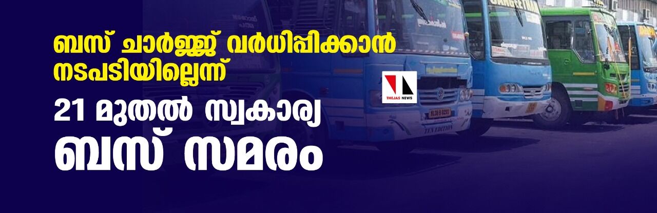 ബസ് ചാര്ജ്ജ് വര്ധിപ്പിക്കാന് നടപടിയില്ലെന്ന്; 21 മുതല് സ്വകാര്യ ബസ് സമരം