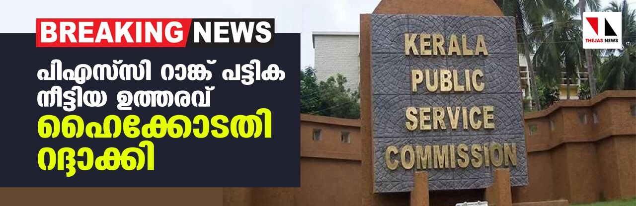 പി എസ് സി റാങ്ക് പട്ടിക നീട്ടിയ ഉത്തരവ് ഹൈക്കോടതി റദ്ദാക്കി