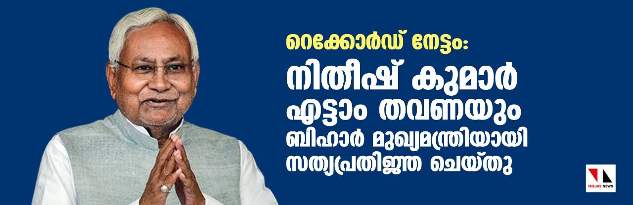 ആര്ജെഡിയുമായി സഖ്യം രൂപീകരിച്ചാണ് നിതീഷിന്റെ ഇത്തവണത്തെ സ്ഥാനാരോഹണം. ഇത് എട്ടാം തവണയാണ് നിതീഷ് മുഖ്യമന്ത്രിയാവുന്നത്.