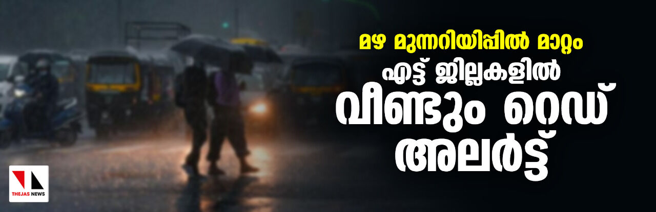 മഴ മുന്നറിയിപ്പില് മാറ്റം;എട്ട് ജില്ലകളില് വീണ്ടും റെഡ് അലര്ട്ട്