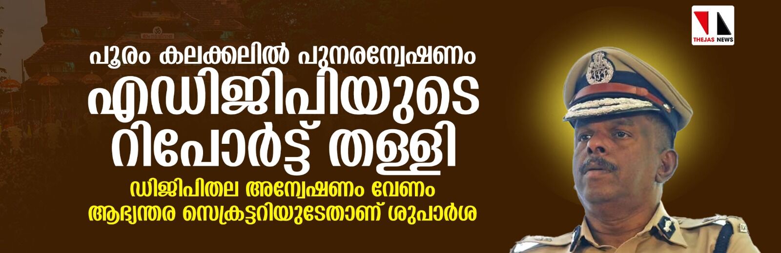 പൂരം കലക്കലില് പുനരന്വേഷണം; എഡിജിപിയുടെ റിപോര്ട്ട് തള്ളി