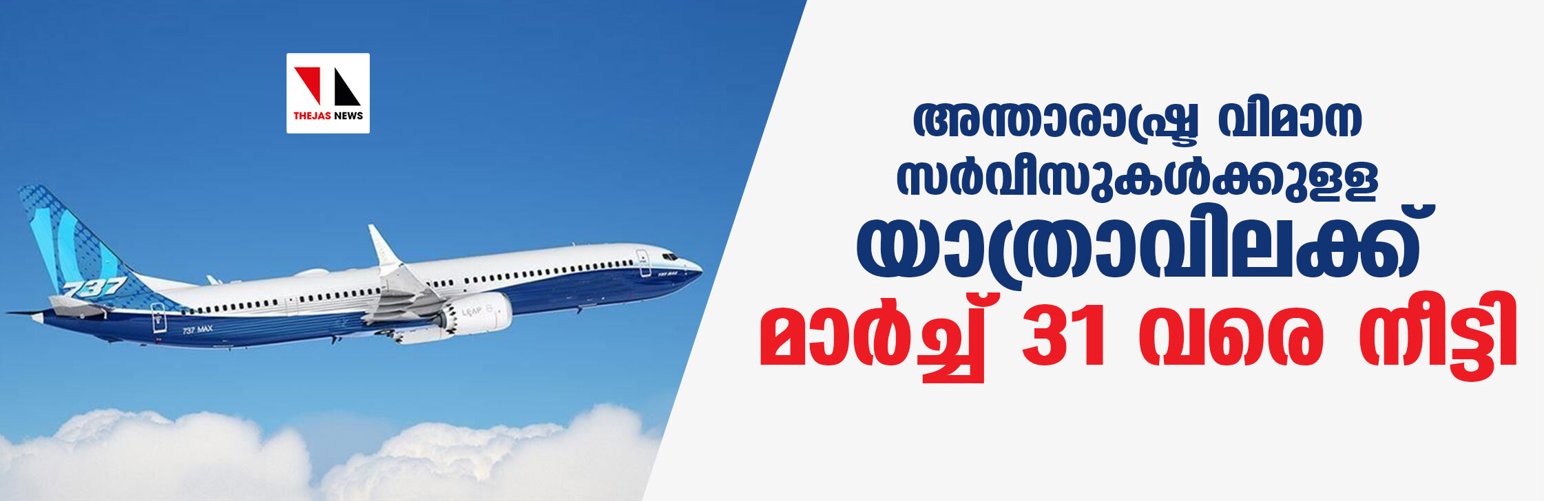 അന്താരാഷ്ട്ര വിമാന സര്വീസുകള്ക്കുളള യാത്രാവിലക്ക് മാര്ച്ച് 31 വരെ നീട്ടി